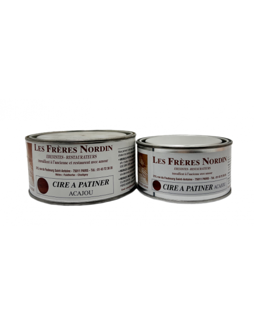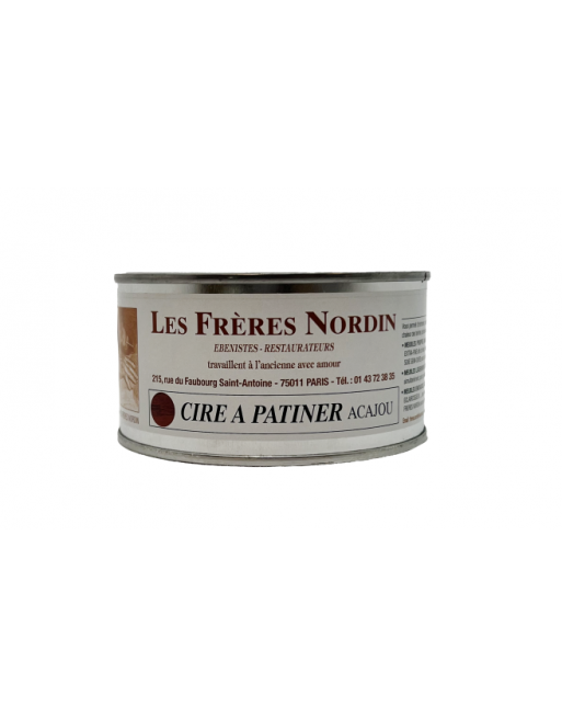 Les CIRES A PATINER des Frères Nordin sont à base de cire d'abeille garanties sans silicone et non grasses. Elles existent en 8 nuances : abeille (jaune), blonde (marron clair), fruitier (orangé), rustique (marron soutenu), fumée (ambrée), antique (marron foncé), acajou (rouge bordeaux), noire.