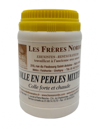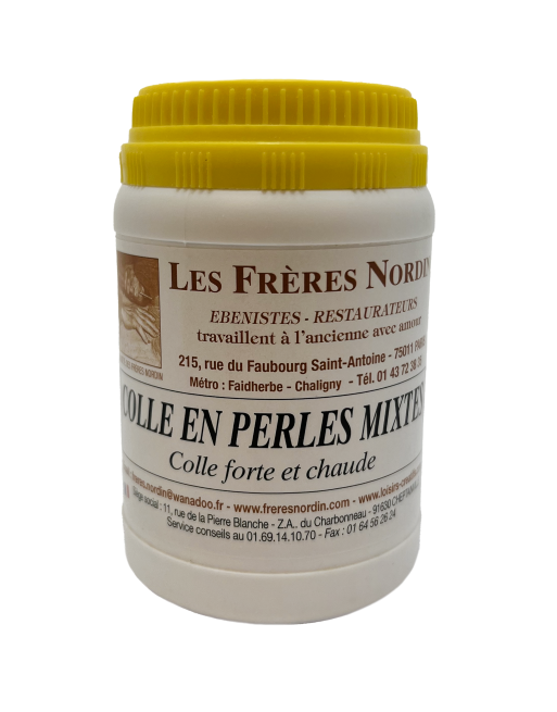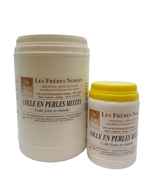 Prête à l'emploi, d’origine animale, appelée aussi « colle forte », elle est composée de 2/ 3 de COLLE D'OS et de 1/3 COLLE DE NERF et s’emploie à chaud. Elle à le pouvoir de réversibilité indispensable dans le domaine de la restauration.
