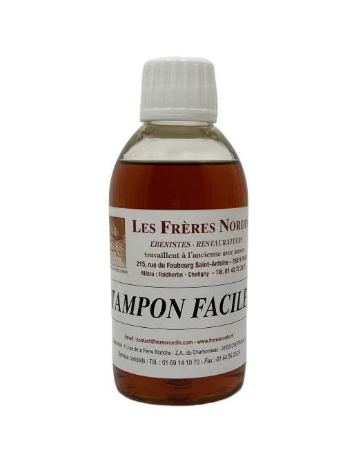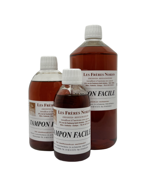 LE TAMPON FACILE permet de vernir au tampon : meubles d’époque, anciens, récents, rustiques, modernes ou contemporains. Il s’applique également sur les laques de Chine et permet aussi de réaliser les finitions noires Napoléon III et autres, après mise en teinte.
