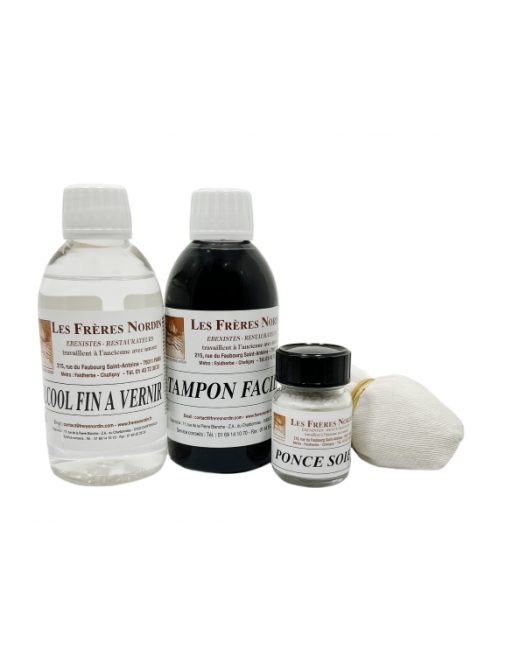 LE TAMPON FACILE permet de vernir au tampon : meubles d’époque, anciens, récents, rustiques, modernes ou contemporains. Il s’applique également sur les laques de Chine et permet aussi de réaliser les finitions noires Napoléon III et autres, après mise en teinte.