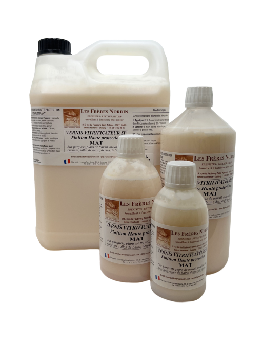 VERNIS VITRIFICATEUR sans odeur et non plastifiant. Protège durablement, sans changer l'aspect des parquets, lambris, meubles de cuisines, salles de bain, dessus de table…