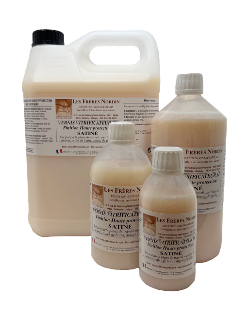 VERNIS VITRIFICATEUR sans odeur et non plastifiant. Protège durablement, sans changer l'aspect des parquets, lambris, meubles de cuisines, salles de bain, dessus de table…